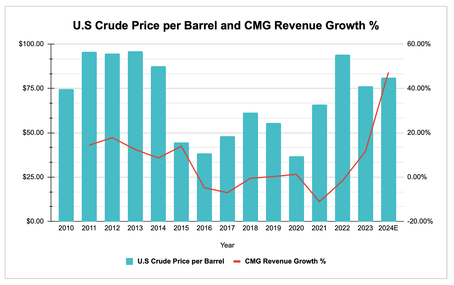CMG's primary clients are oil and gas companies, whose capital and operating spending budgets can fluctuate due to commodity price volatility and economic conditions. This could negatively impact demand for CMG's products and its financial performance.