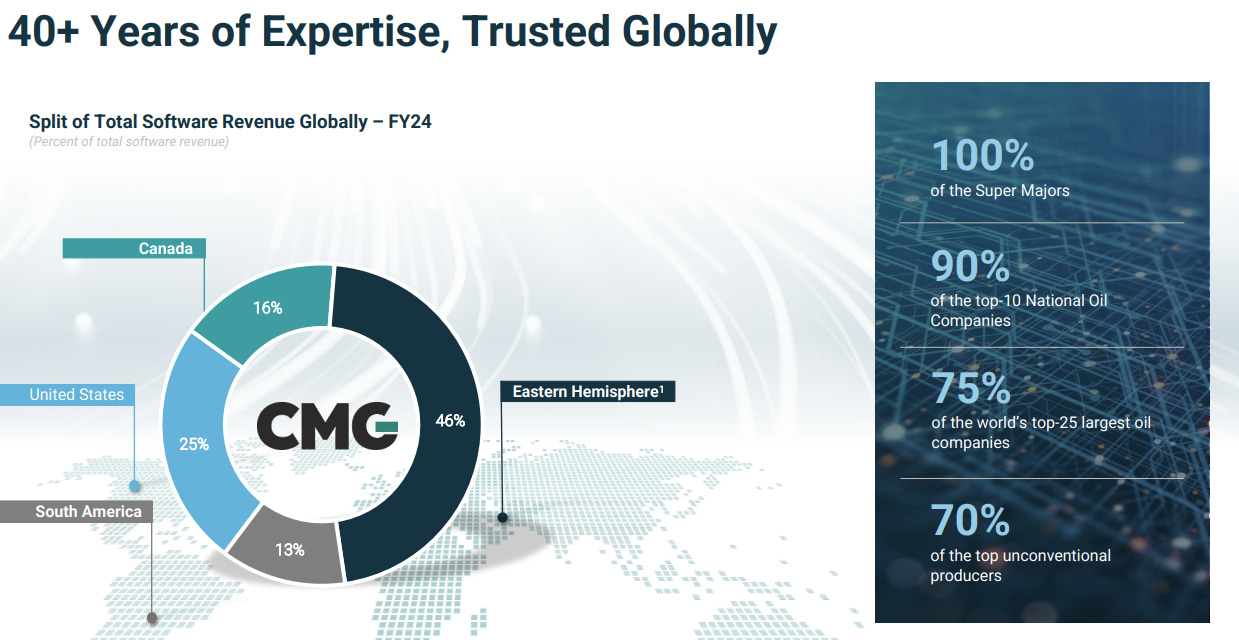 Computer Modelling Group Ltd. (CMG) founded in 1978 and headquartered in Calgary, Canada is a leading global software provider specializing in complex subsurface and surface solutions for the new energy industry. With over four decades of experience in reservoir simulation, CMG offers cutting-edge technology backed by deep industry expertise. Their commitment to innovation, coupled with exceptional customer support, has earned them a strong reputation and a loyal customer base proven by the high Net Promoter Score (NPS) of ~ 68%.