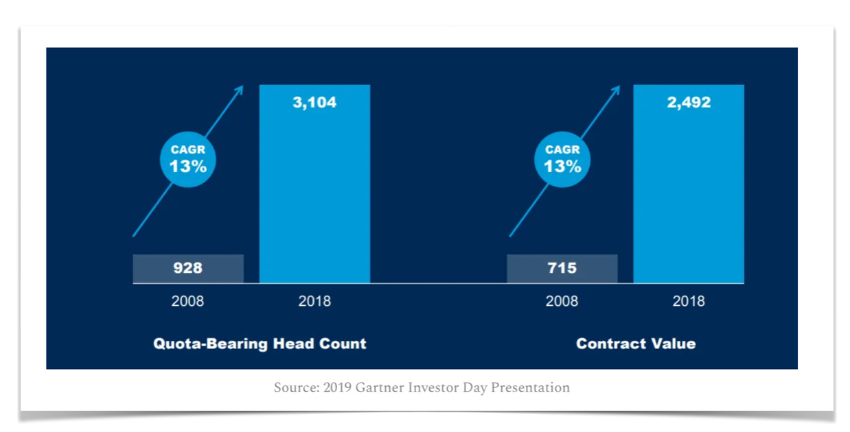 Gartner's superior sales management has proven to be the critical driver of their sustained growth. While their alignment with the thriving technology industry is beneficial, it is their sales execution that truly differentiates them. CEO Eugene Hall underscored the significance of their rigorous salesforce training during the 2019 Investor Day: