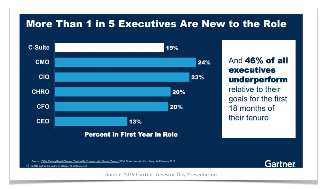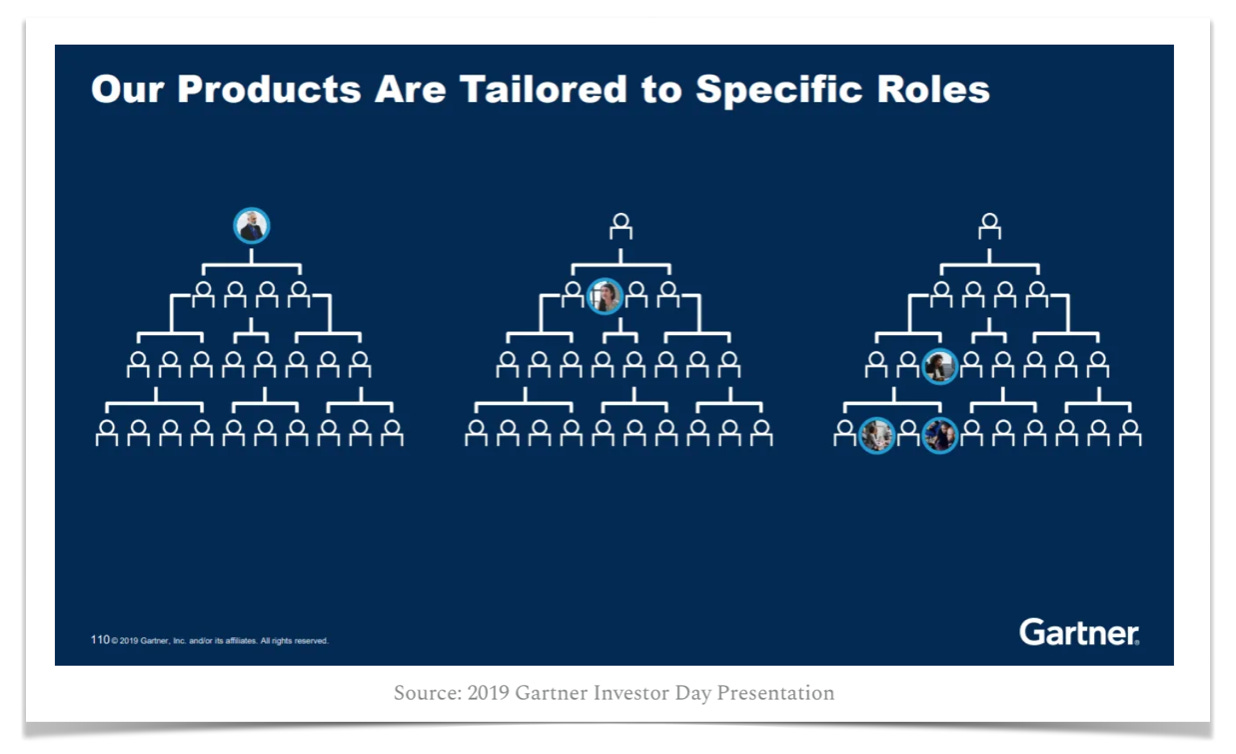 Beyond the business unit heads, Gartner also sells specific products for employees that report to division heads. Learning how to sell to these different individuals with a different product offering takes time and effort.